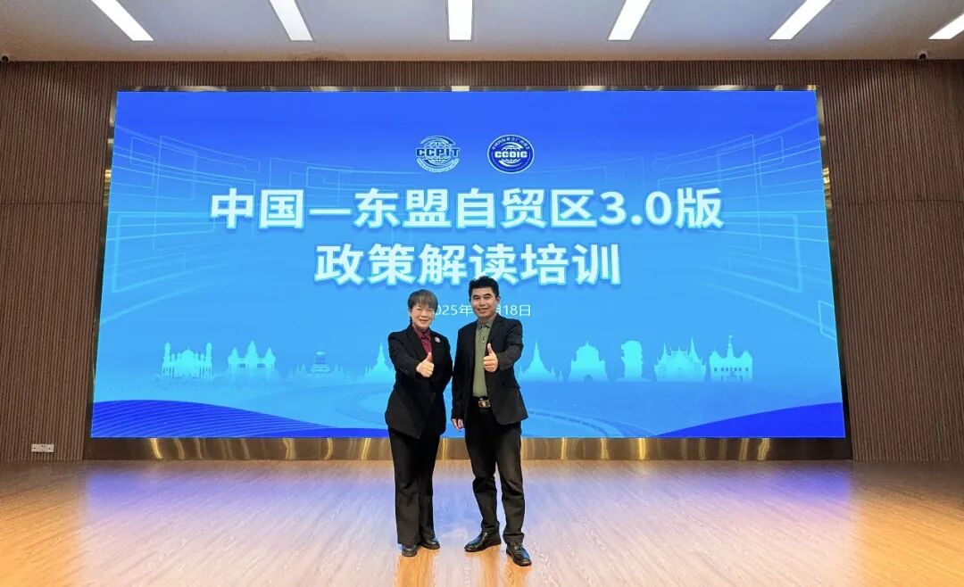 2025年12月18日上午,由中国国际贸易促进委员会广西分会、广西国际商会主办的“中国—东盟自贸区3.0版生效实施政策解读培训”在南宁举行。广西天缘绿科技集团积极组织相关人员参加本次培训,主动对接高水平开放政策,着力提升企业把握区域发展机遇的能力。