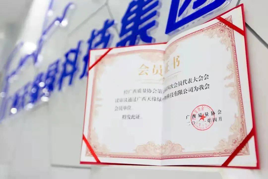 2021年4月,经广西质量协会第九届四次会员代表大会会议审议通过,集团母公司“广西天缘绿生物科技有限公司”正式加入广西质量协会,成为协会会员单位。