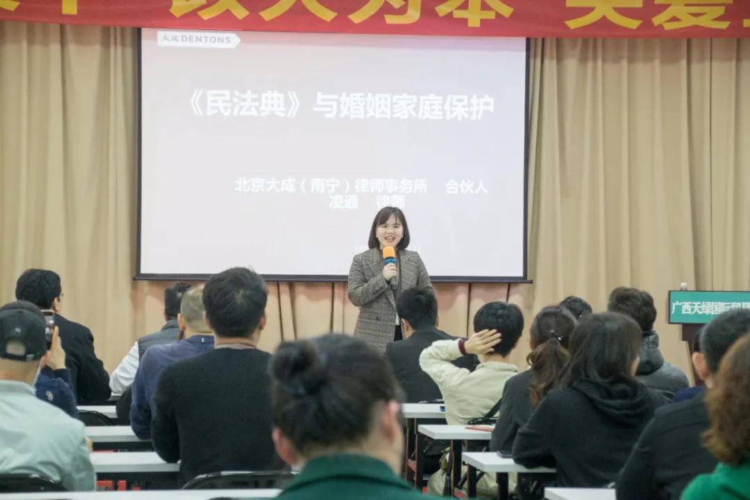 当然,教育训练不仅限于员工参加,也面向代理商伙伴开放。3月11日第14期教育训练课程,集团特别外请了北京大成(南宁)律师事务所的凌通律师,让员工和代理商共同学习了今年1月1日起实施的《民法典》关于婚姻家庭部分新增和变更的内容。