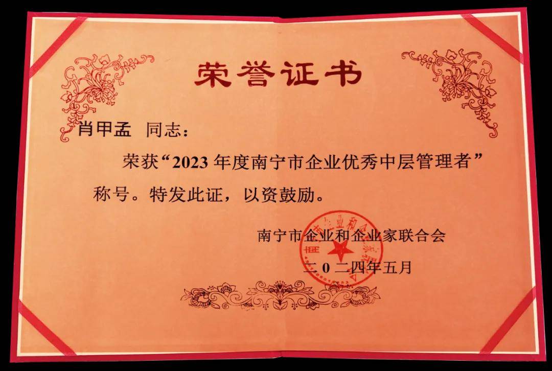 喜报!天缘绿集团多位中层管理者荣获“2023年度南宁市企业优秀中层管理者”