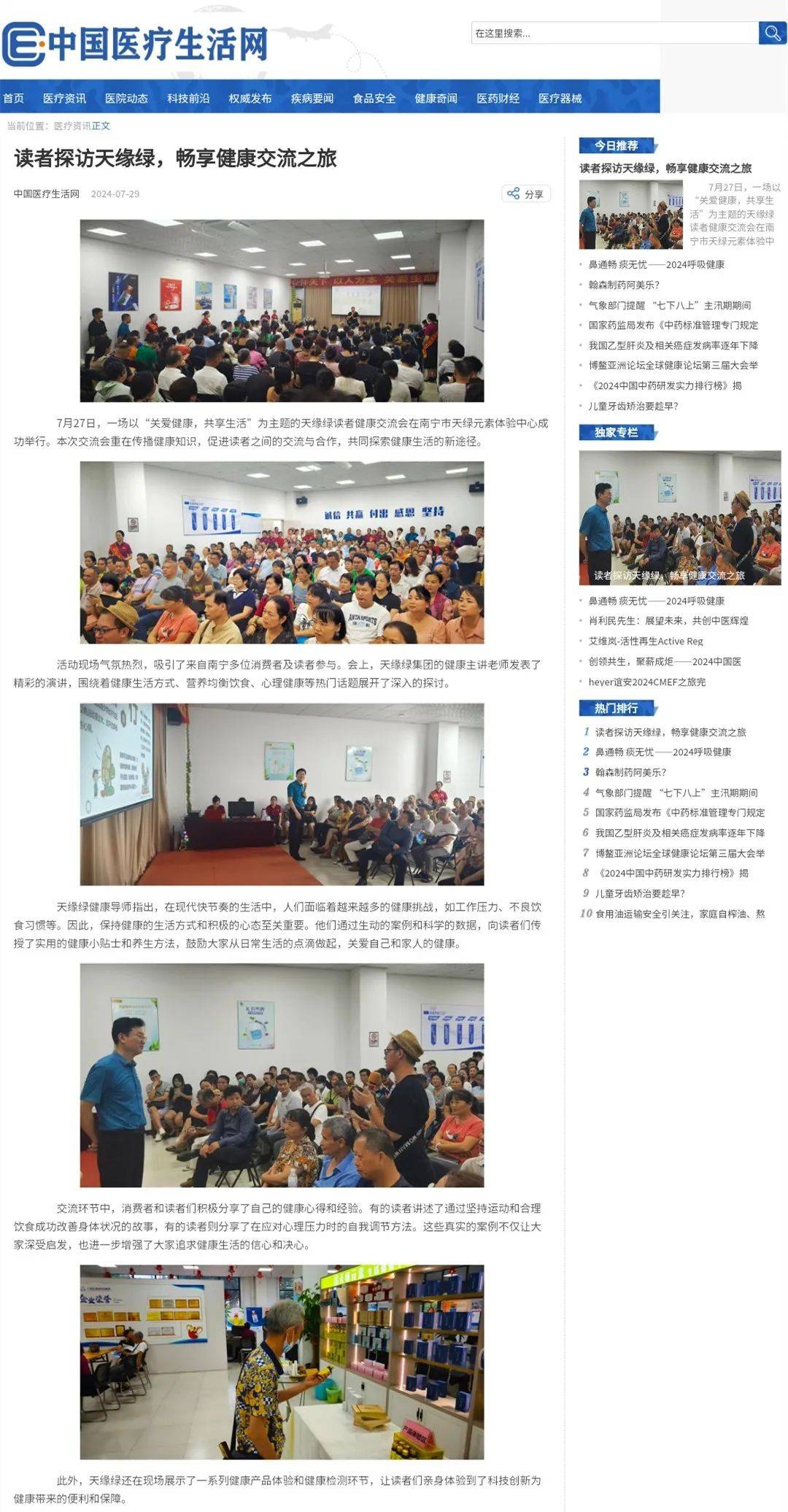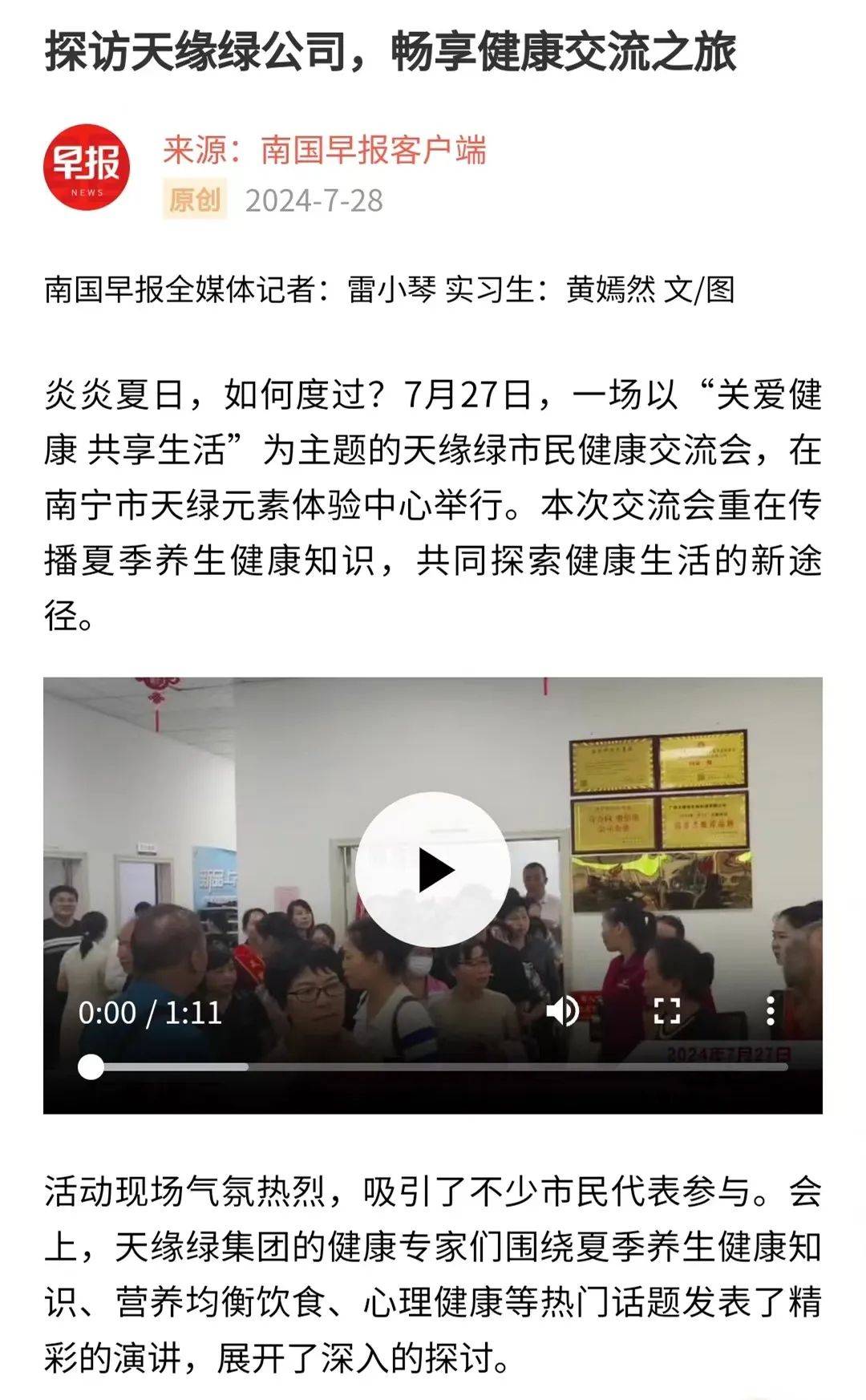 引爆媒体热潮!天缘绿健康交流会获南国早报等三十多个媒体报道