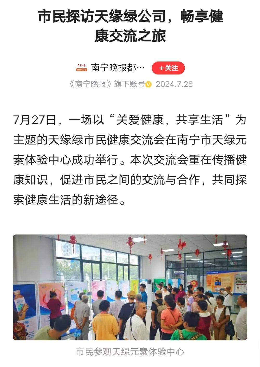 健康交流会活动报道迅速在各大媒体平台上传播开来。许多市民表示,通过媒体的报道,他们不仅学到了很多实用的健康知识,还感受到了天缘绿集团对公众健康的深切关怀和社会责任感,认为这样的活动对于提升公众健康素养、推动健康生活方式非常具有意义。