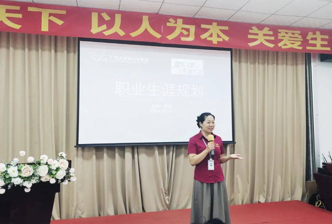 在快速发展的时代浪潮中,人才的成长与发展已成为企业持续前进的动力源泉。8月22日,天缘绿集团运营总裁郭阳女士为全体员工带来了一场别开生面的《职涯规划》课程,不仅为员工们的职业生涯点亮了明灯,也再次彰显了集团“以人为本”的文化和对员工成长的高度重视。
