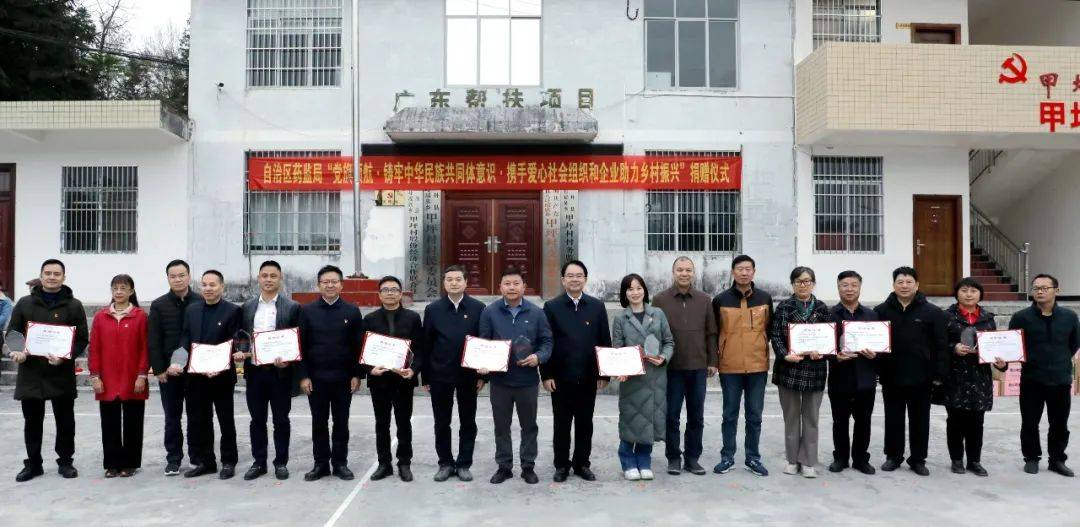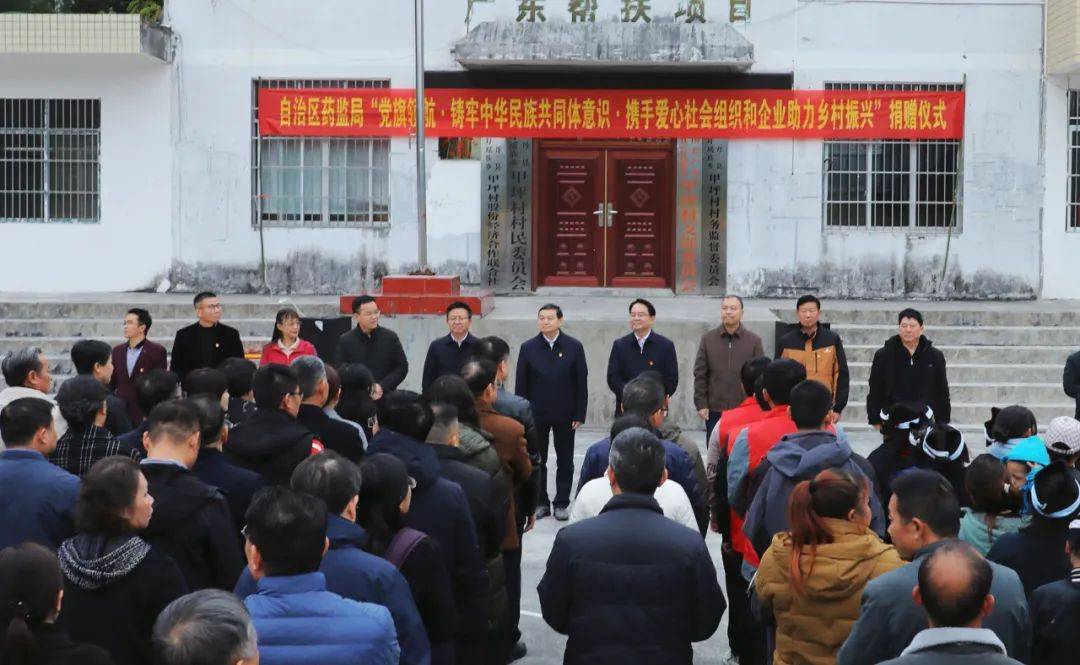 天缘绿集团与广西医药商会、广西药师协会、广西医疗器械行业协会、广西化妆品协会等众多单位跟随广西壮族自治区药监局领导携手共赴南丹县,开展了以“党旗领航·铸牢中华民族共同体意识·携手爱心社会组织和企业助力乡村振兴”为主题的帮扶捐赠活动。