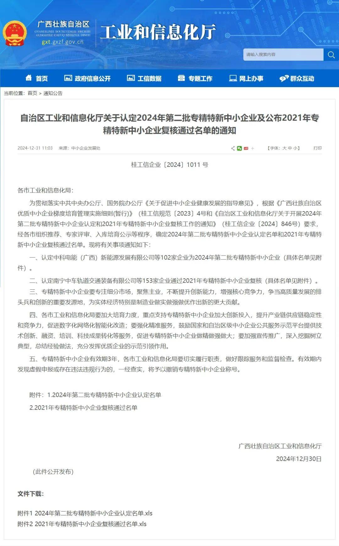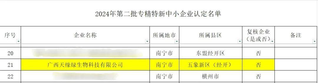 近日,广西壮族自治区工业和信息化厅在其官方网站公布了2024年第二批专精特新中小企业名单,广西天缘绿生物科技有限公司凭借卓越的创新实力,成功荣获广西“专精特新”中小企业称号。这是继公司荣获南宁市“专精特新”中小企业称号后,再次获得的自治区级荣誉。