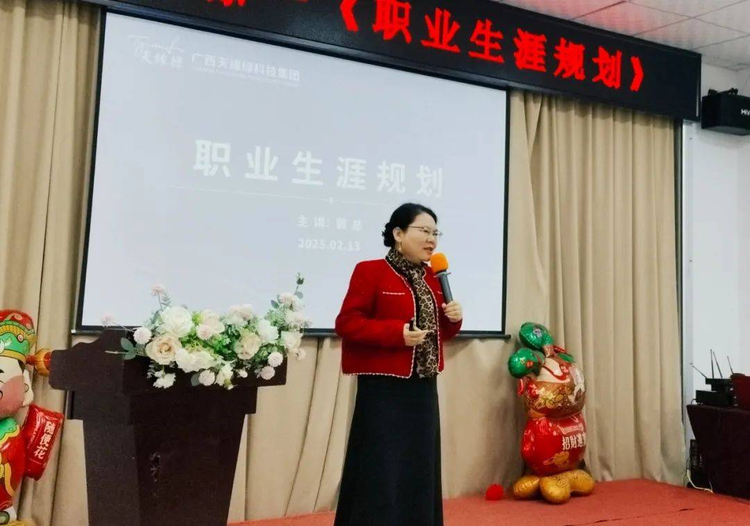 人勤春来早,奋进正当时。2月13日,天缘绿集团2025年首场《职业生涯规划》专题培训圆满举办。集团运营总裁郭阳女士化身“职场引路人”,为全体员工献上开工首场职场赋能课程,通过系统的知识输出与沉浸式互动课堂,助力员工绘制个人职业蓝图。
