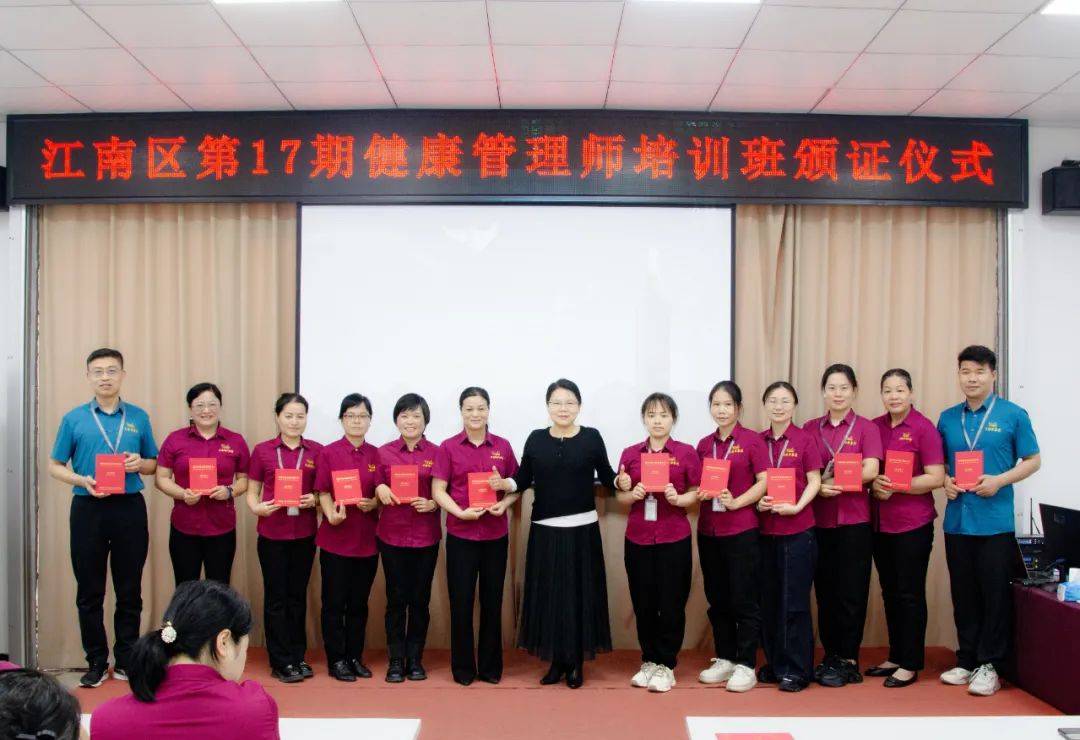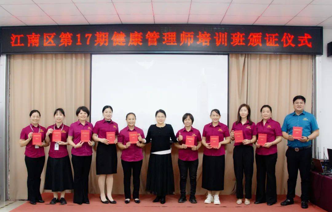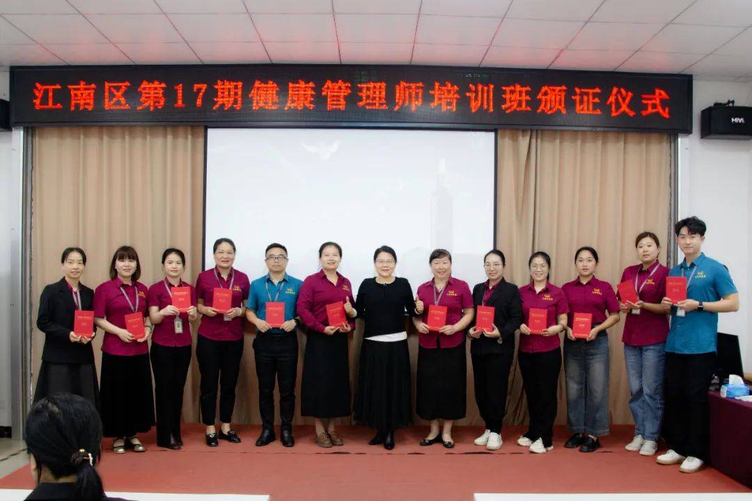 3月3日,江南区第17期健康管理师培训班颁证仪式在天绿元素生活体验中心温馨举行。42名学员参加考试,40人成功取得国家高级健康管理师证书,通过率高达95%。这场仪式不仅是对学员们努力的肯定,更是天缘绿集团在人才培养和践行社会责任上的又一次见证。
