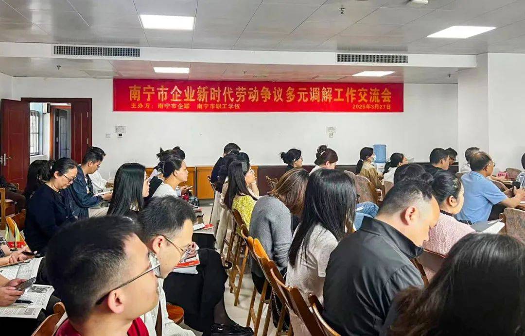 3月27日,南宁市企联组织召开了“新时代劳动争议多元调解工作交流会”。广西天缘绿科技集团作为市企联副会长单位受邀参会,与全市企业管理人员、人力资源专家及工会干部共同探讨劳动争议多元调解的创新模式,助力构建和谐劳动关系。