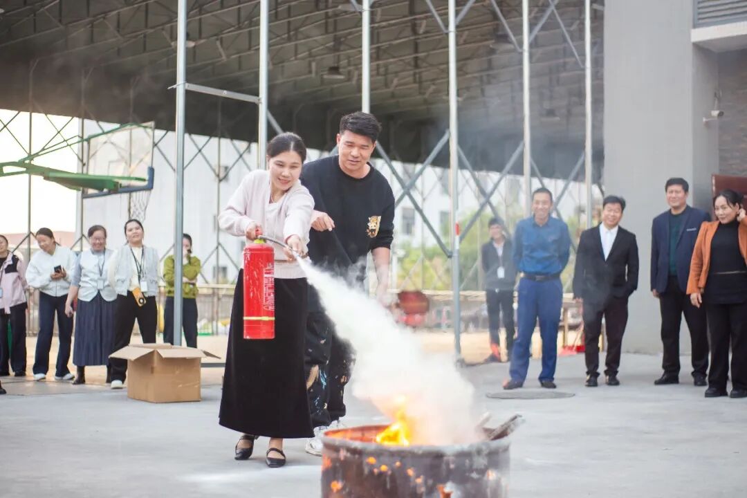 紧随其后的是灭火器实操环节,每一位员工都亲手拿起灭火器,在指导下学习掌握“提、拔、握、压”的操作要领,成功扑灭模拟火源,将理论知识转化为真实的应急处置能力。