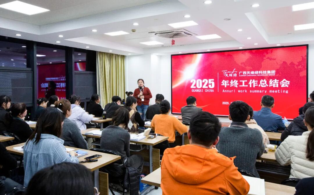 12月29日傍晚,天缘绿集团总部会议室的灯光温暖亮起,全体员工齐聚一堂,2025年年终工作总结会议在既庄重又亲切的氛围中拉开帷幕。这不仅是一次对过往耕耘的深情回望,更是为2026年的发展明确方向、凝聚共识、积蓄能量的重要节点。